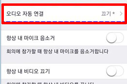 회의 > 오디오 자동연결 메뉴를 확인합니다.